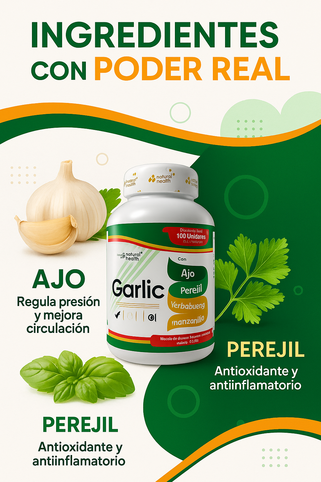 "Mi médico me recomendó acompañar el estilo de vida saludable con un suplemento natural. Este de ajo y perejil me ha caído bien, no me irrita el estómago y siento que me ayuda a mantenerme más estable, junto con la dieta. Importante: no es medicamento, pero como complemento me ha servido."